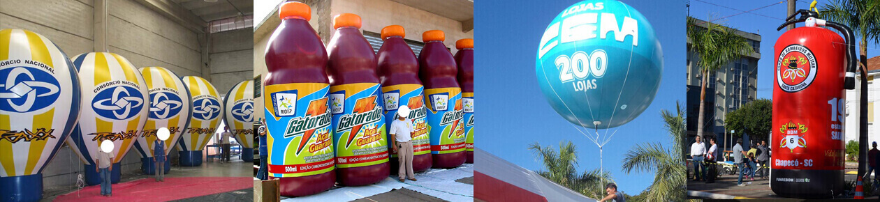 Balão Inflável Promocional para destacar sua Marca em Eventos e Ações Promocionais. Utilizando gás hélio, podem chegar cerca de 10 metros de altura.