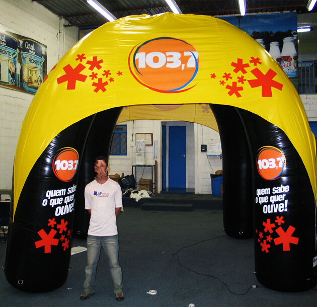 Podemos caracterizar sua Tenda Inflável Personalizada com as cores e logotipos da sua empresa, Usamos tecnología de impressão digital para produzir seu inflável e obter sucesso na sua ação promocional.