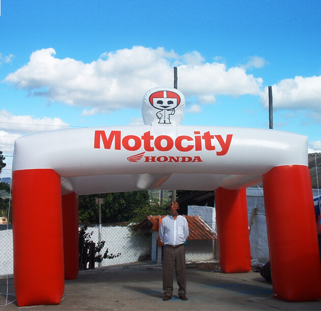 Podemos caracterizar sua Tenda Inflável com as cores e logotipos da sua empresa, Usamos tecnología de impressão digital para produzir seu inflável e obter sucesso na sua ação promocional.